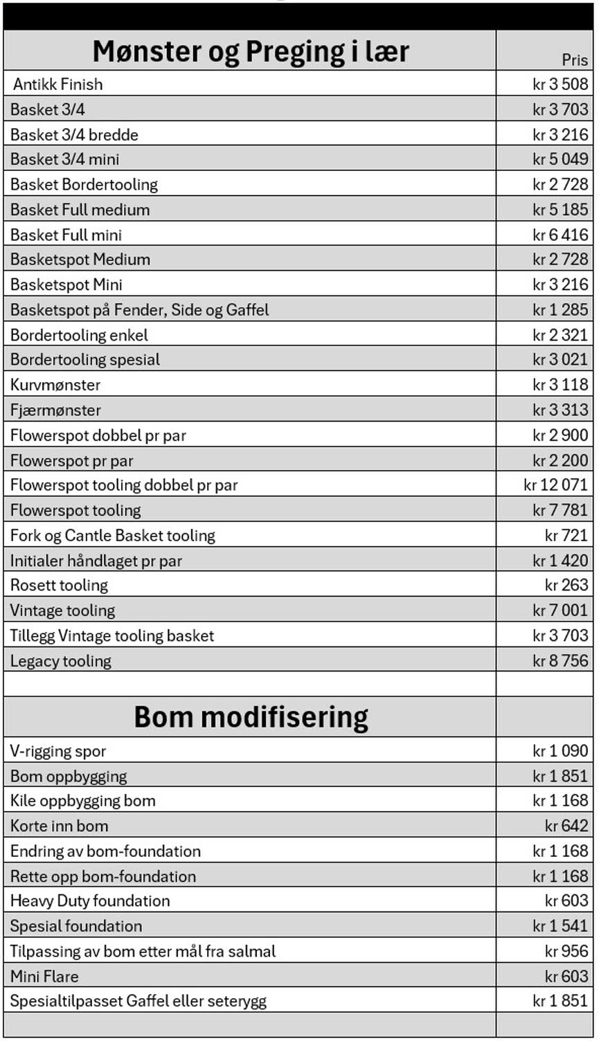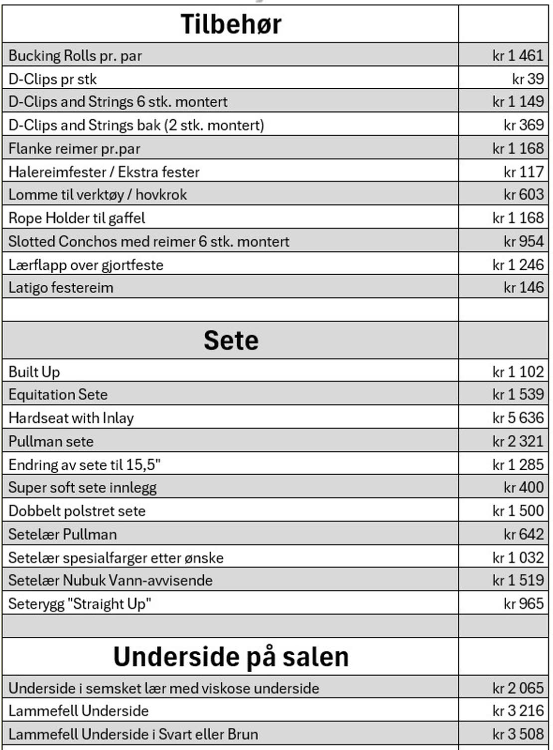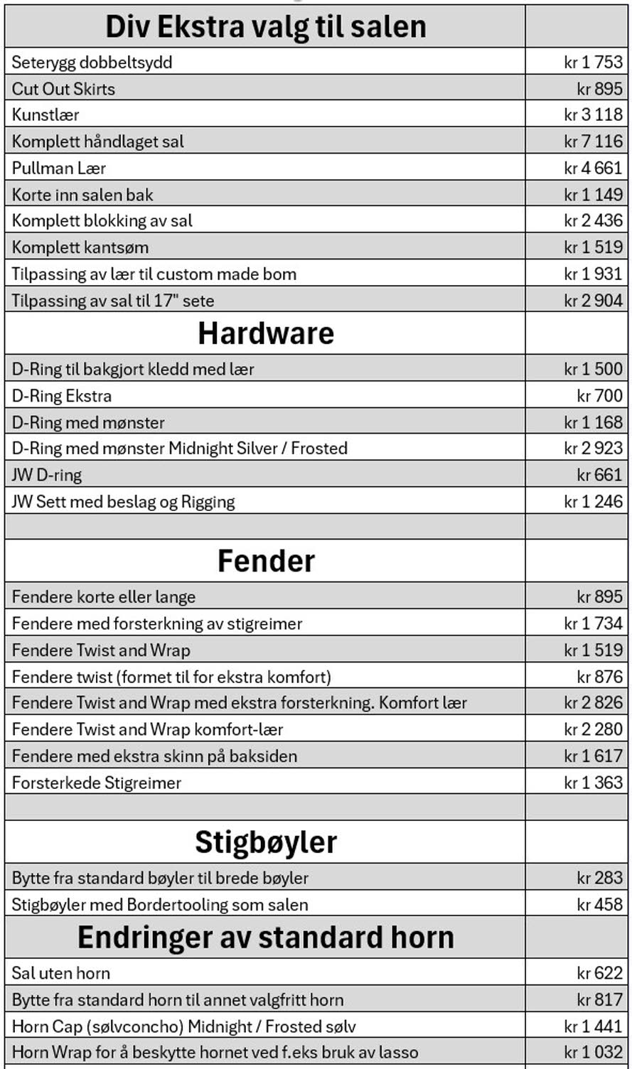 Rodeo Hesteutstyr i sammarbeid med Pullman / Continental Saddlery tilbyr Custom Made saler etter våre kunders ønsker og spesifikasjoner. Man kan velge mellom en mengde ulike bommer, design, utskjæringer / mønster samt forskjellig setelær osv.