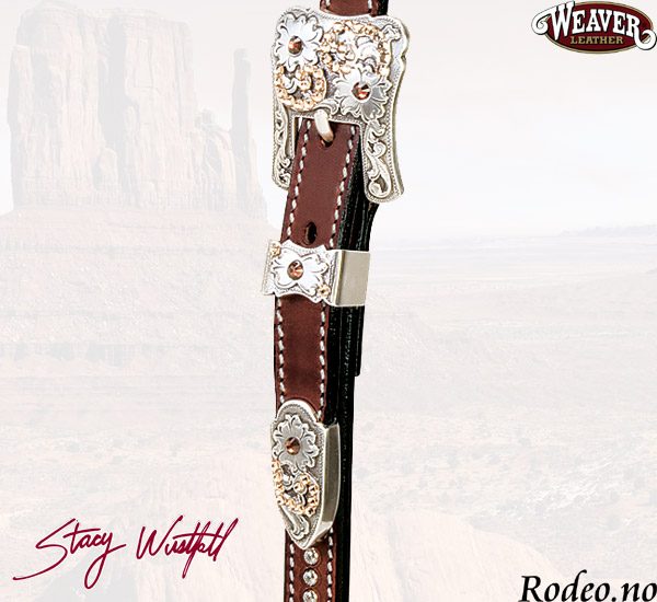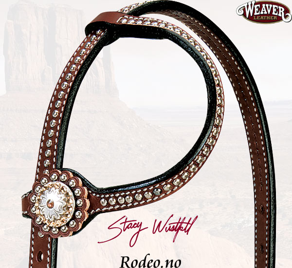Dette hodelaget er laget i beste 3/4" (1,9 cm) lær. Dobbeltsydd med "nagler" og Sterling Silver conchos og spenner med Swarovski krystaller. Hodelaget har en smidig dobbeltsydd pannereim. Spenner og Conchos er belagt med en beskyttende overflate behandling.