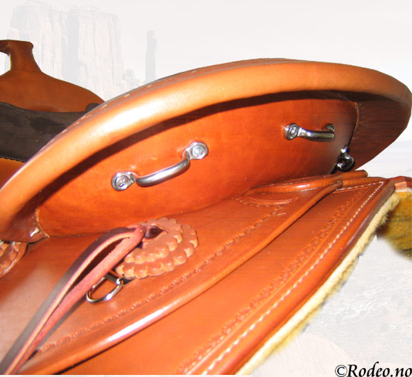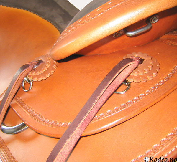 Denne salen har ekstra mange festemuligheter. (se store bilder). Med et elegant kantmønster og festereimer for enkelt å feste ønsket utstyr på salen.