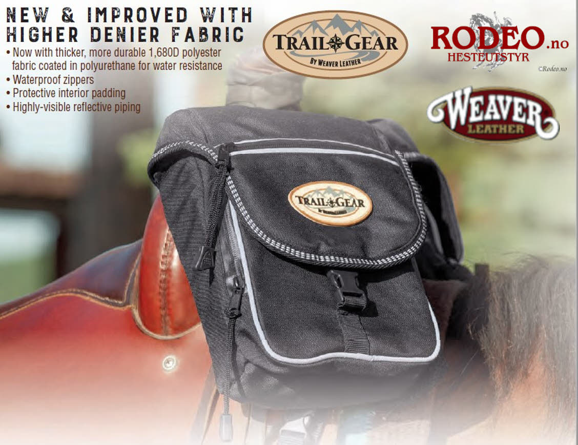 Salvesker i Trail Gear serien fra Weaver. Smart robust Cantle Bag med flere rom for oppbevaring av utstyr på tur. Egner seg godt til både korte og lange turer.
