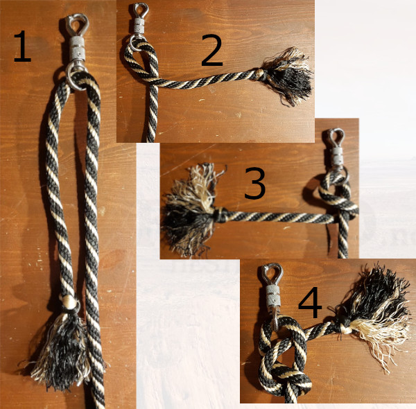 Forslag til hvordan feste krok til Lead Rope: Denne knuten er grei å løsne selv om den er har blitt stram.