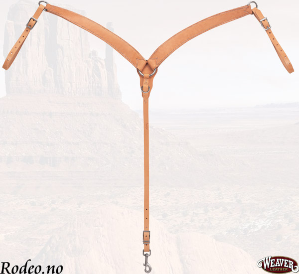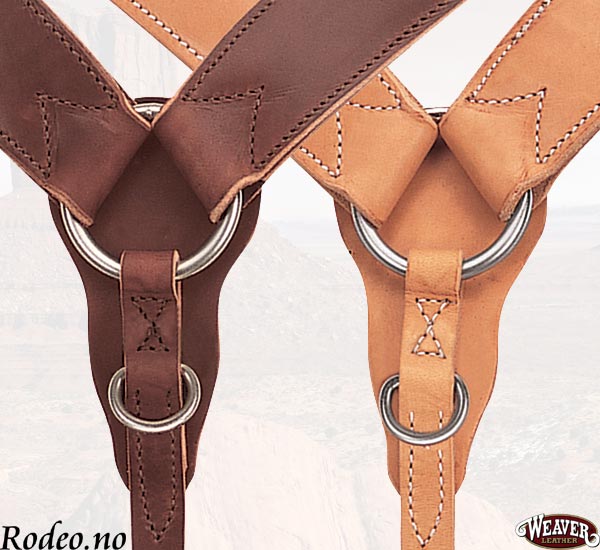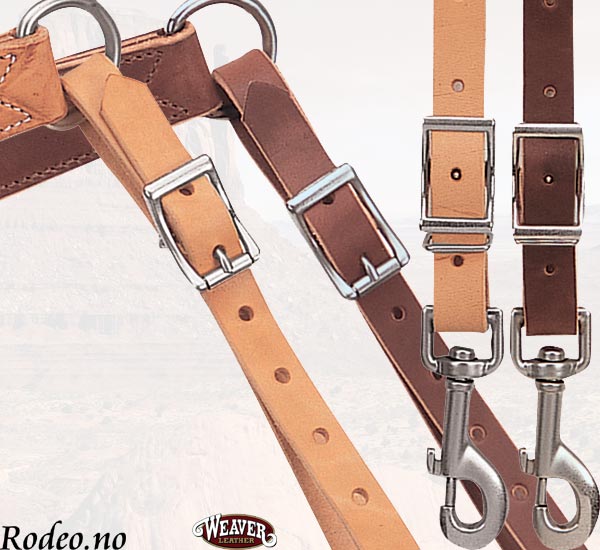 Dobbeltsydd modell fra Weaver i kraftig bredt formsydd lær. Ekstra kraftige spenner og beslag. Et fortøy som er godt egnet til alsidig bruk. Konstruert for tøffe tak. Ekstra beskytter av lær bak den midtre ringen hindrer gnag og ubehag.